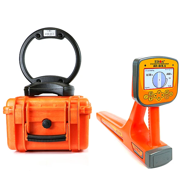 В составе комплекта приемник в виде моноблока с цветным ЖК дисплеем, на который выводится изображение трассы и в автоматическом режиме происходит расчет глубины залегания коммуникации до 30 м, а также величины тока в линии и самый мощный мультичастотный генератор в линейке ТЕХНО-АС, с дальностью работы до 10 км.