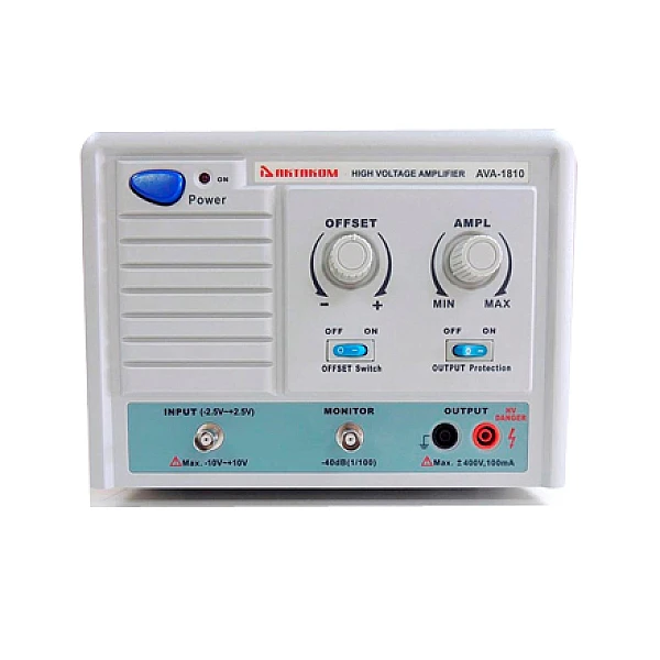 Амплитудные усилители АКТАКОМ AVA-1810 предназначены для усиления амплитуды сигналов в полупроводниковой и высоковольтной инженерии и в других областях. Приборы имеют коэффициент усиления по напряжению от 0 до 180 и снабжены несколькими ступенями защиты по выходу от перегрузки. Амплитуда выходного сигнала регулируется десятиоборотным резистором, что обеспечивает высокую точность управления. Кроме того, предусмотрена возможность установки смещения постоянной составляющей. Для контроля выходных характеристик предусмотрен выход «Monitor» с коэффициентом ослабления 100:1, предназначенный для подключения к осциллографу.