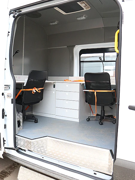 Фургоны — самый востребованный тип шасси среди мобильных лабораторий неразрушающего контроля в центральной части России. В фургонах достаточно пространства для нескольких рабочих мест и установки проявочной машины. Фургоны не требуют дорогого обслуживания. Но главное — для управления автолабораториями до 3,5 тонн не требуется обучение на категорию C. Для них достаточно категории В. Популярные модели: ГАЗ, УАЗ, Ford Transit, Peugeot Boxer, Citroen Jumper, Volkswagen Crafter/Transporter, Mercedes-Benz Sprinter, Iveco Daily, Fiat Ducato.