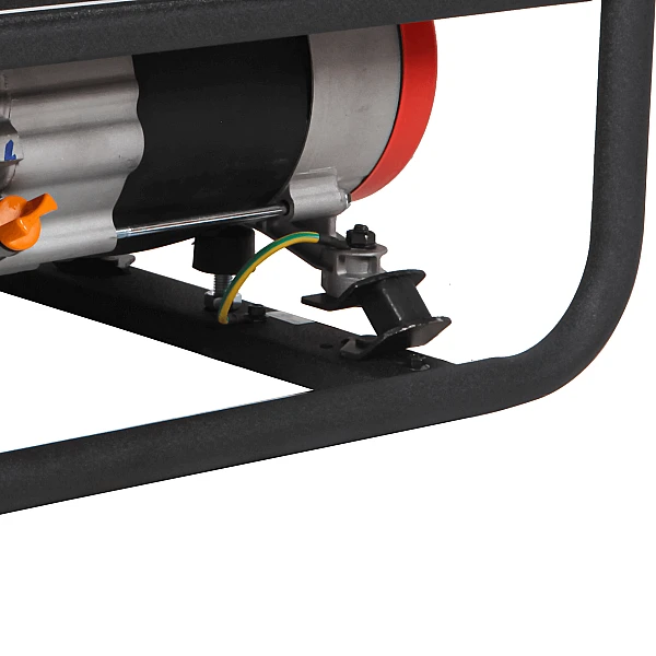 Бензиновый генератор основан на компактном четырехтактном двигателе с верхним расположением клапанов. Такая компоновка снижает расход топлива и повышает эффективность работы. Двигатель гильзованный, что упрощает его ремонт, а размещение в прочной открытой раме улучшает охлаждение всех элементов установки. Большой бак объемом 25 литров положительно сказывается на автономности.