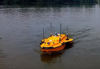 Круизная скорость катера составляет 2-3 м/с, максимальная - 7 м/с . Время работы от одного комплекта батарей составляет 3 ч.