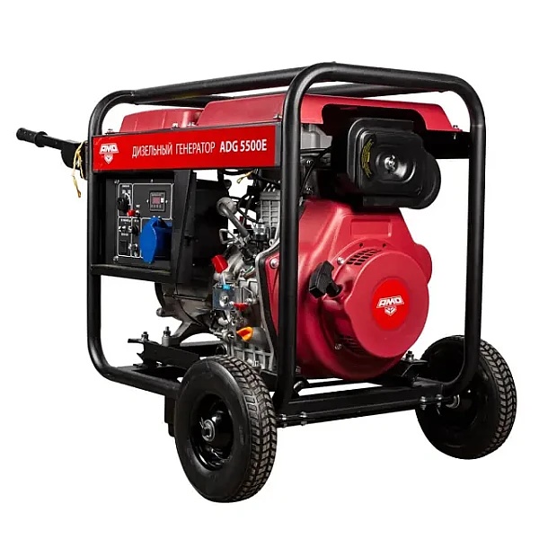 Дизельный генератор AMO ADG 5500E - автономная мобильная электростанция мощностью 5 кВт, которая подходит для выездной работы с однофазными инструментами, а также может закрыть все потребности небольшой мастерской или торгового объекта в электроэнергии. По сравнению с бензиновым, дизельный генератор отличается экономичностью и больше ориентирован на длительную непрерывную эксплуатацию.