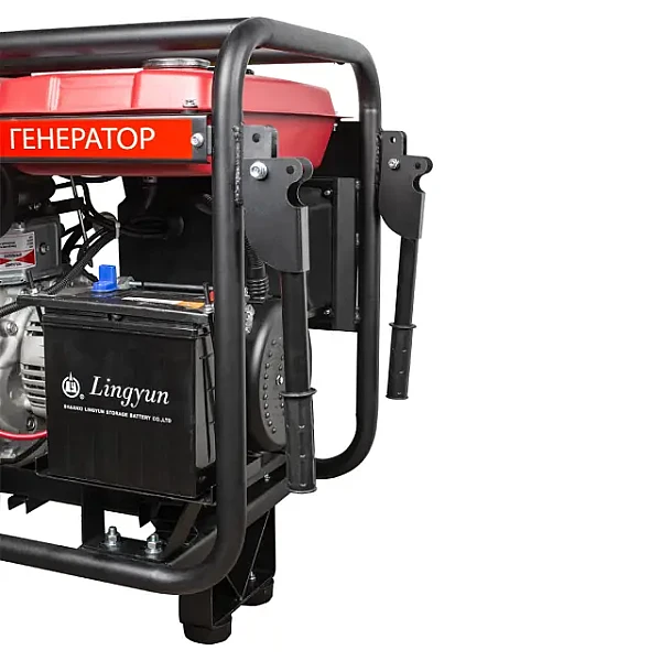 Установка оборудована электростартером, что позволяет быстро и удобно запускать ее поворотом ключа. Такое решение особенно актуально на выезде и для решения задач, требующих частых перестановок. Электростартер питается от аккумулятора, который подзаряжается в процессе работы. Возможность ручного запуска сохранена, она может пригодиться в непредвиденных ситуациях.