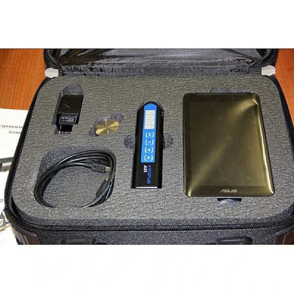 Планшет на базе ОС Android (позволяет расширить возможности толщиномера до уровня современного дефектоскопа, с возможностью отображения и сохранения А-скана, B-скана, возможностью работать со стробами, вбирать режим измерения толщины, параметры обработки сигнала и т.д