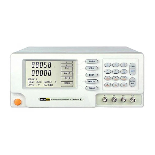 Измеритель иммитанса Е7-14М предназначен для измерения иммитанса различных электро- радиокомпонентов: резисторов, конденсаторов, катушек индуктивности, полупроводниковых приборов на восьми измерительных частотах: 100 Гц, 120 Гц, 1 кГц,10 кГц, 20 кГц, 30 кГц, 60 кГц, 100 кГц.