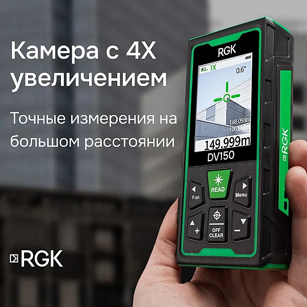 Купить лазерный дальномер с видоискателем RGK DV150 — решение для настоящих профессионалов, способное значительно облегчить работы на строительной площадке, геодезические измерения и сложные ремонтные работы.