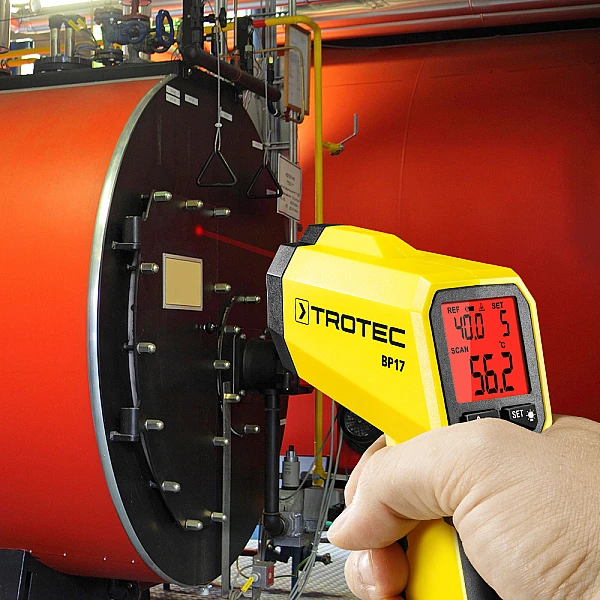 Проверьте тепловыделение клеммных коробок, электрических контактов, генераторов или корпусов трансформаторов. Используйте Trotec BP17 для быстрого и надежного контроля перегрева электрических устройств.
