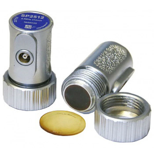 Преобразователь прямой совмещенный со сменными полиуретановыми протекторами. Предназначен для контроля изделий с грубой поверхностью.