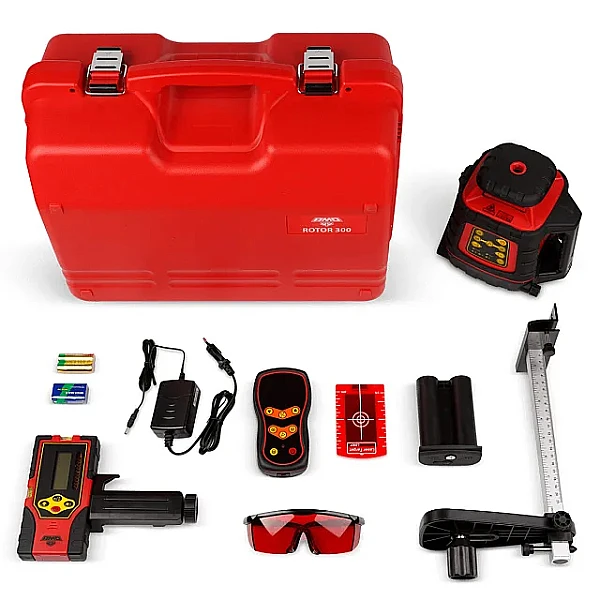 Ротационный лазерный нивелир AMO ROTOR 300 проецирует вертикальную и горизонтальную плоскости с разверткой на 360°. Прибор позволяет с высокой точностью проводить выравнивание дорожного полотна, выполнять разметку во время таких строительных работ, как заливка полов, возведение стен и фундаментов. Дальность работы составляет 600 м. Нивелир имеет яркий лазер красного цвета, который отлично видно при работе как внутри, так и снаружи помещения. Лазерный уровень работает от шести щелочных батареек или перезаряжаемого аккумулятора.