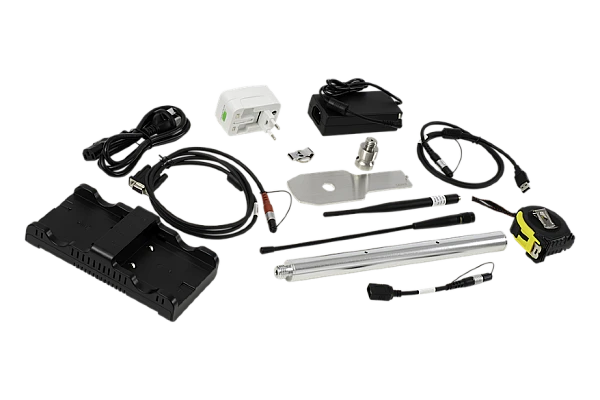 - Уклономер: встроенный компенсатор наклона автоматически корректирует координаты точек, получаемых под наклоном вехи до 30 °. Удобно снимать труднодоступные места, вроде углов зданий.