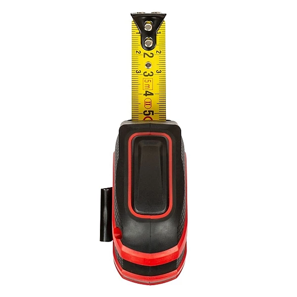 Благодаря плотному резиновому покрытию корпус устойчив к падениям, хорошо лежит в руках и не выскальзывает. Прочная стальная лента шириной 19 мм с дополнительным нейлоновым слоем защиты отличается долговечностью, стойкостью к износу и выцветанию. Это покрытие дополнительно препятствует бликованию, что упрощает восприятие значений длины.
