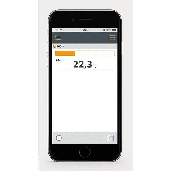 При работе с Testo 905i все полученные данные передаются на смартфон или планшет по Bluetooth, что избавляет от проблем, связанных с подключением или повреждением проводов, и в целом упрощает измерительный процесс. Датчик получает энергию от батарей, одного комплекта