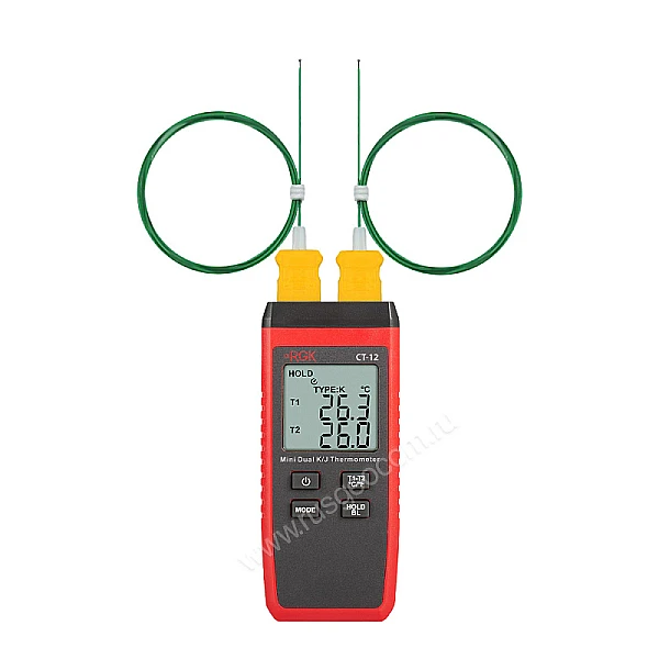 Контактный термометр RGK CT-12 - это надежный и точный прибор для измерения температуры в диапазоне от - 40 °С до + 260 °С с комплектной термопарой. Погрешность при этом составляет не более ± 1,5 °C. Главное преимущество этой модели - 2 гнезда для подключения выносных датчиков с функцией определения разности между каналами. Благодаря такой конфигурации можно быстро и удобно решать множество измерительных задач, связанных с диагностикой и настройкой электроники, промышленного оборудования, систем отопления и вентиляции т.п.