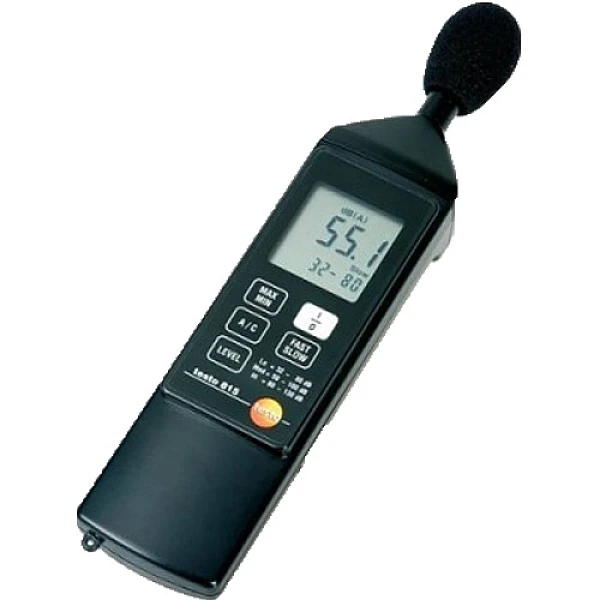 Testo 815 соответствует второму классу точности по IEC 60651. В конструкции прибора предусмотрено гнездо 1/4 дюйма для установки на фотоштатив, что позволяет использовать прибор, как стационарный измеритель шума и дополнительно повышает точность измерений. Среди достоинств шумомера Testo 815: