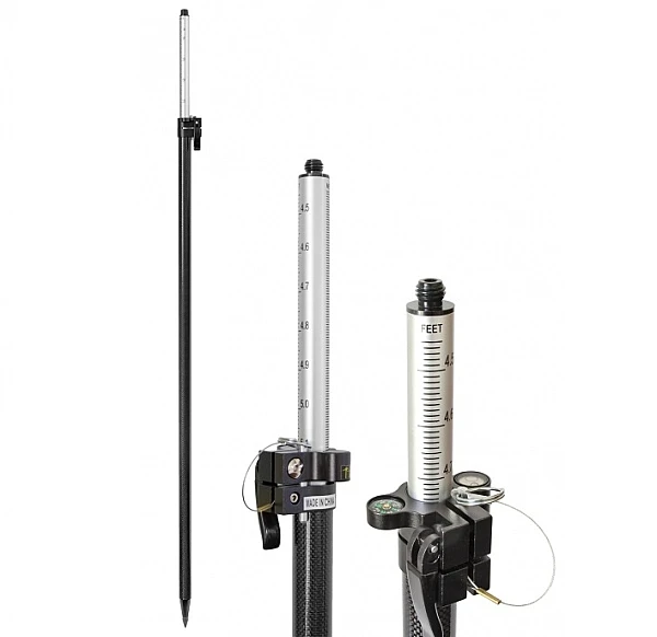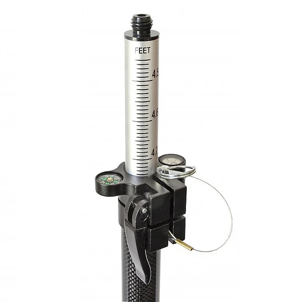Телескопическая двухсекционная веха VEGA GLS25B предназначена для установки отражателей и ГНСС приёмников, имеющих установочную резьбу 5/8 дюйма. Веха имеет малый вес - всего 1,05 кг.  Нижняя секция изготовлена из карбона (углеволокно), верхняя часть из алюминия. Для предотвращения проскальзывания веха имеет отверстия (через 20 см) и фиксатор.  Для установки в вертикальное положение веха снабжена уровнем.