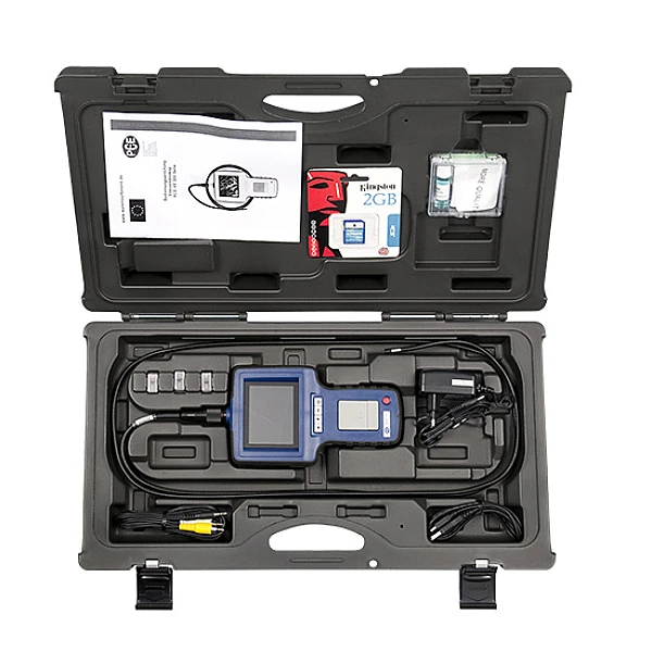 Видеоэндоскоп с минимальным диаметром зонда - всего 3,9 мм. Прибор позволяет заглянут в самое маленькое отверстие или механизм, не разбирая и не разрушая объект. Прибор полностью готов к работе, в комплект поставки входит специальное зеркало бокового обзора, которое также выполняет функцию направляющей.